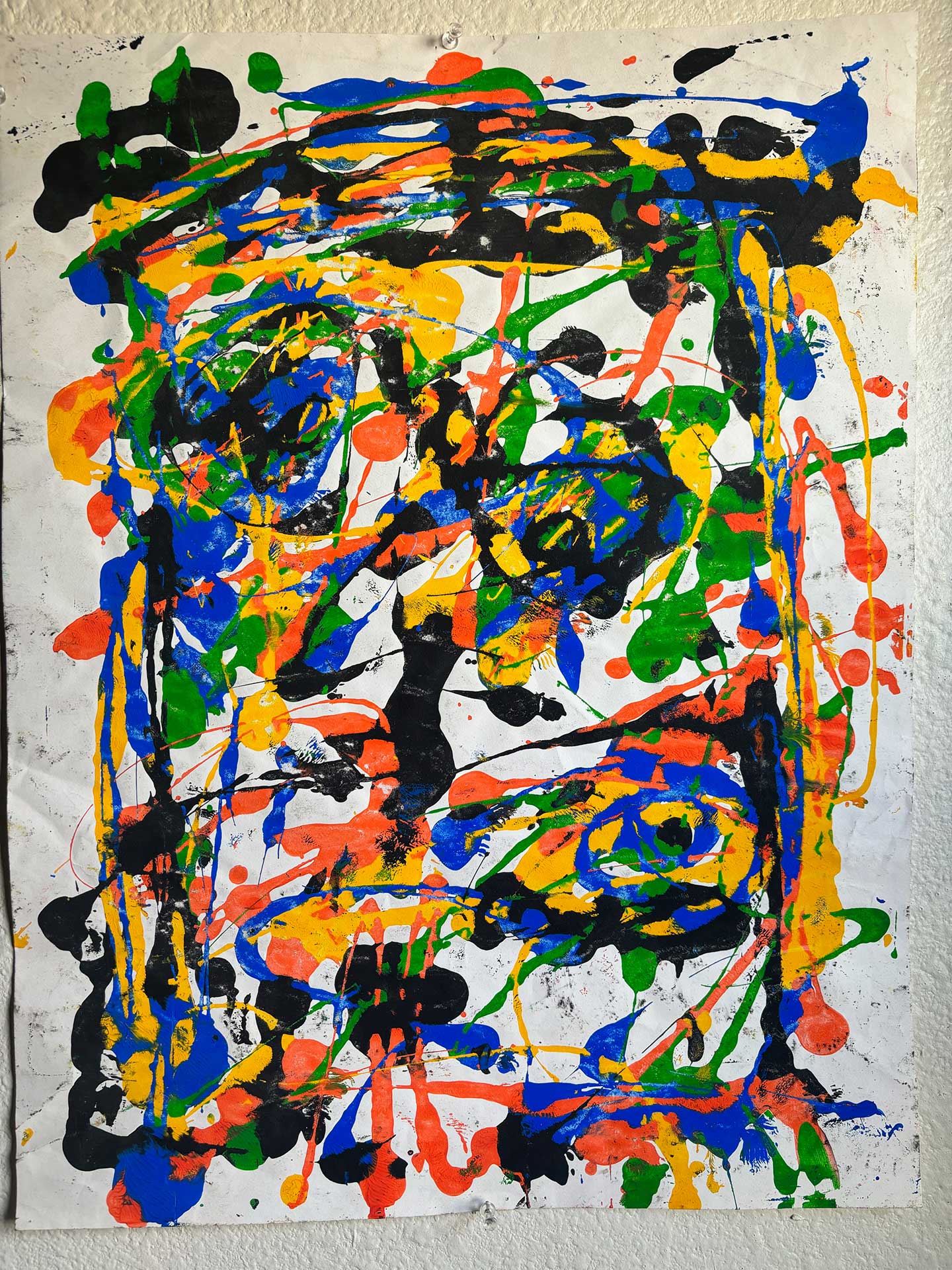 Each piece I create begins with a sense of play and exploration. I use bold colors, layered textures, and dynamic lines to capture the pulse of life — whether it’s the turn of a wheel, the strum of a guitar, or the emotion within a face. Influenced by artists such as Kandinsky, Miró, and Calder, my goal is not to imitate but to express — to transform rhythm and movement into visual poetry.